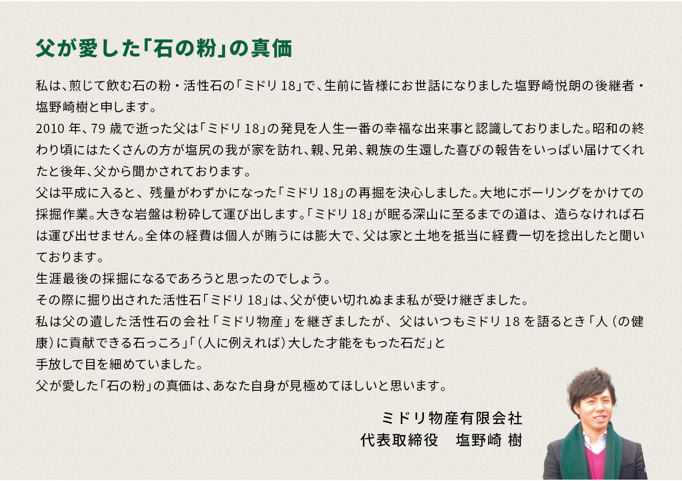 ミドリ物産の全面協力を得て再始動!煮だした上澄みを飲む不思議な石の伝説「ミドリ18」を未来につなぐ